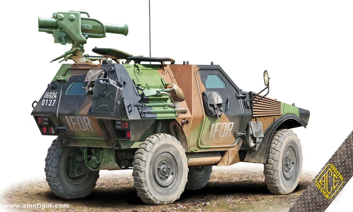 VBL TOW : équipée d’un poste de tir lance-missiles antichars américain TOW, destiné au combat antichar longue portée, jusqu’à 3 750 m. Emport de 4 munitions